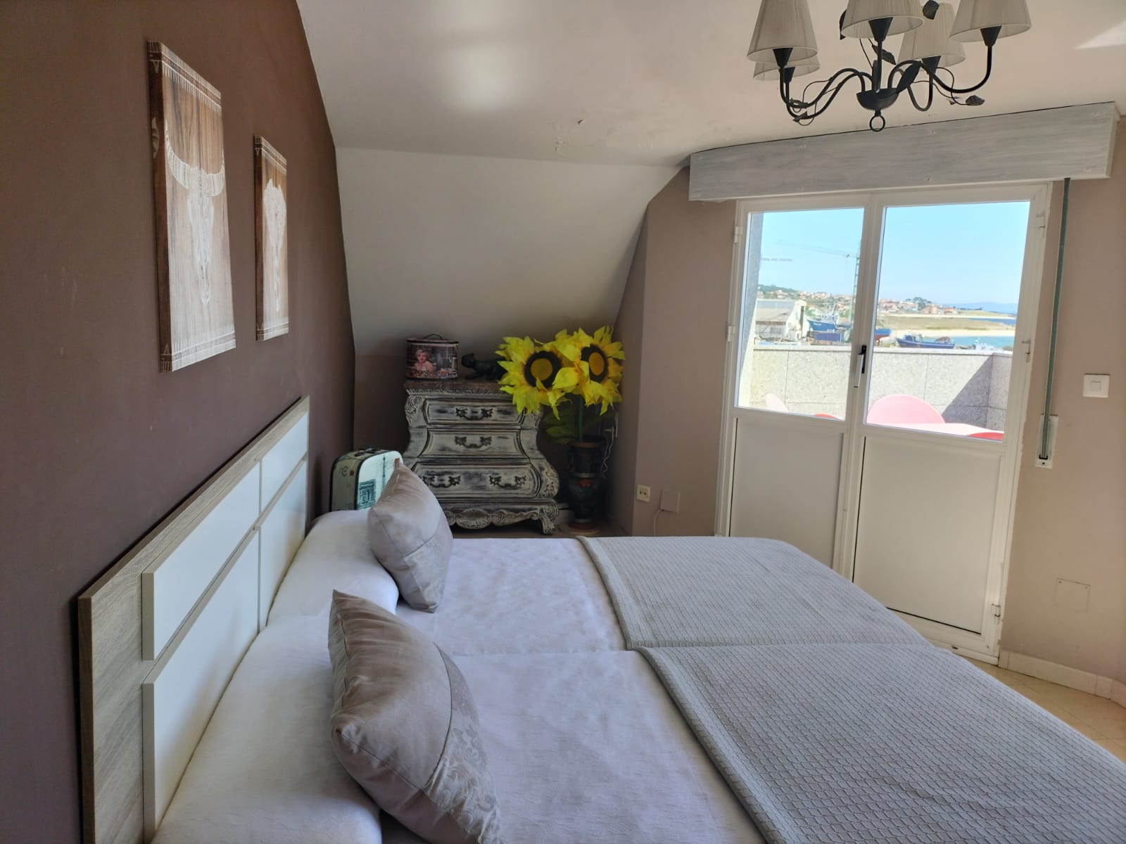 Este atico esta frente al mar, justo en el Puerto. Playas de Aguiño muy cerca.